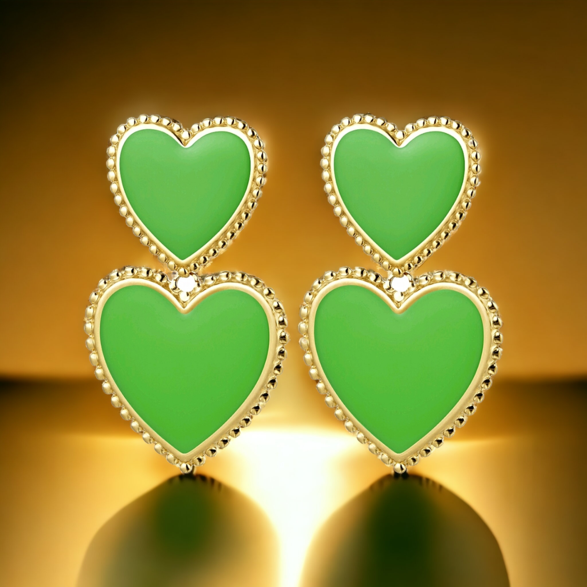Hoe leuk zijn deze fuchsia met gouden oorbellen in de vorm van twee hartjes! De oorbellen hebben een schattig gedetailleerd randje en zijn gemaakt van Stainless steel in combinatie met enamel. De oorbellen hebben een lengte van 5,3 cm en zijn daarmee perfect te combineren met meerdere sieraden! Ook leuk om deze sieraden te combineren met meerdere sieraden met fuchsia details.