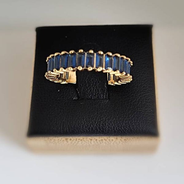 Deze ring met rechthoekige zirkoonsteentjes is een echte eyecatcher. De stainless steel ring is verstelbaar en dus passend om elke vinger.