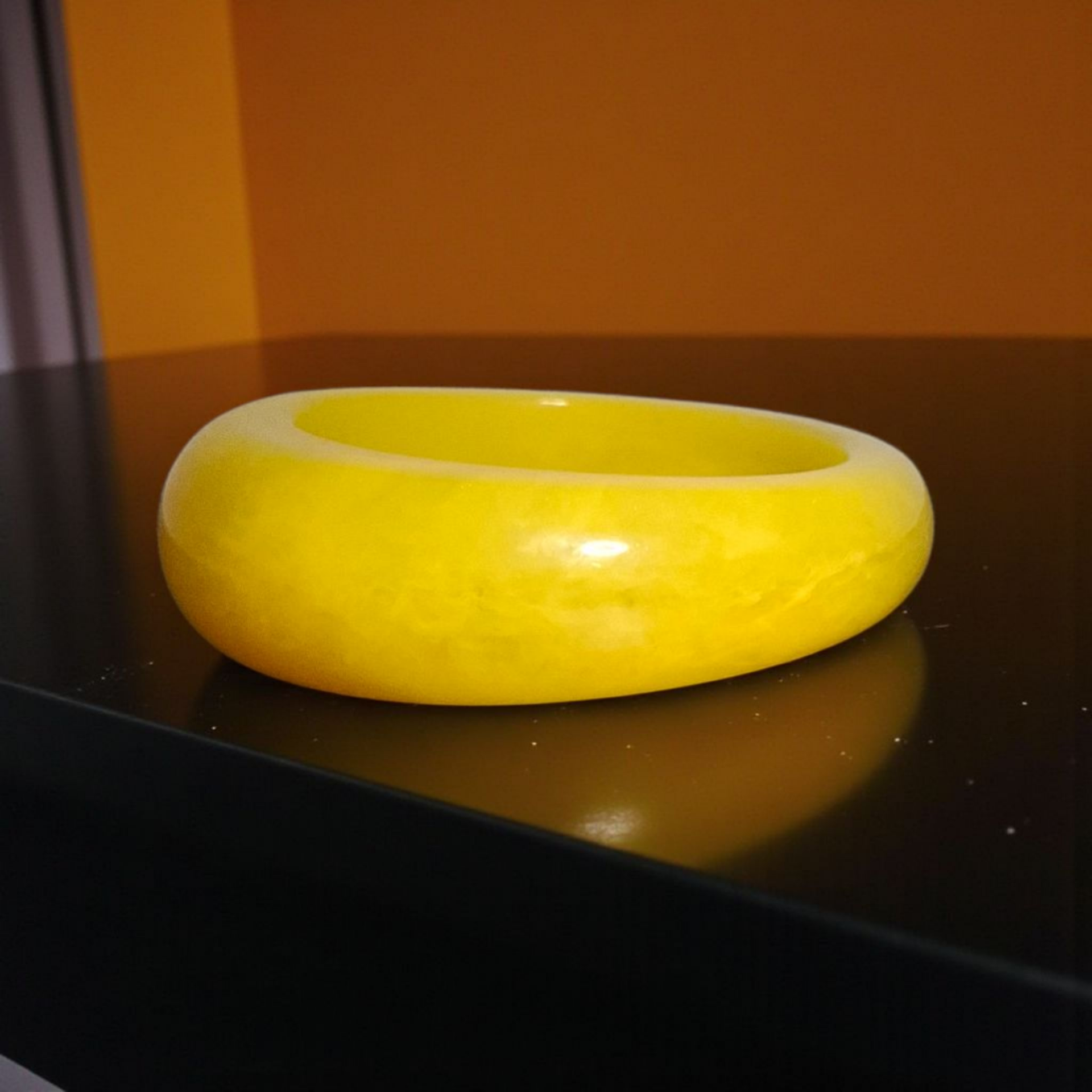 Leuke statement armband gemaakt van hars in marmerlook. Met de vloeiende lijnen en zachte rondingen ben je met deze armband klaar voor het komende mode seizoen 2026. De armband heeft een doorsnede van 6,8 cm en een verloop van 1cm van achter naar voor (zie foto 3)
