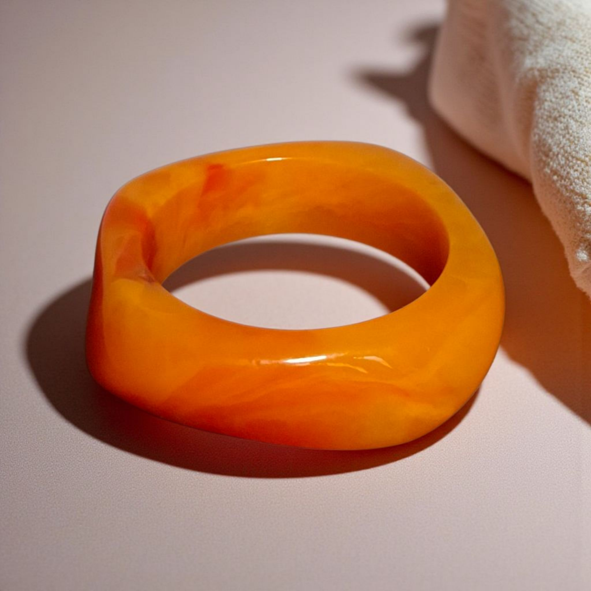 Leuke hars armarmband met afgeronde vierkante hoeken voor een speels effect. De armbanden zijn perfect te combineren met verschillende armbanden in diverse stijlen. De armband heeft een doorsnede van 6,2 cm en is 2cm breed. De oranje armband is licht doorzichtig, de oranje-rood armband is ondoorzichtig.